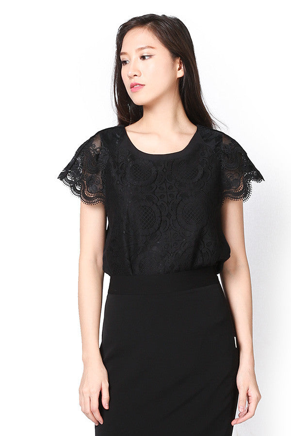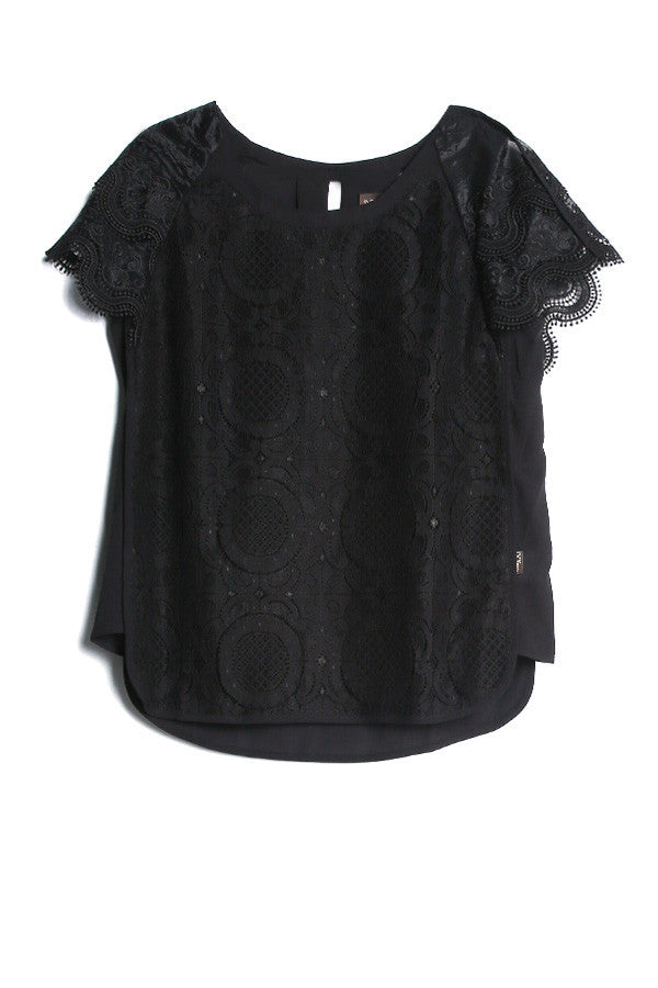 Áo ren đen 2 lớp thiết kế ngắn tay dáng suông với phần gấu áo là đường bo tròn mềm mại khoe nét gợi cảm và nữ tính của những cô nàng lãng mạn.