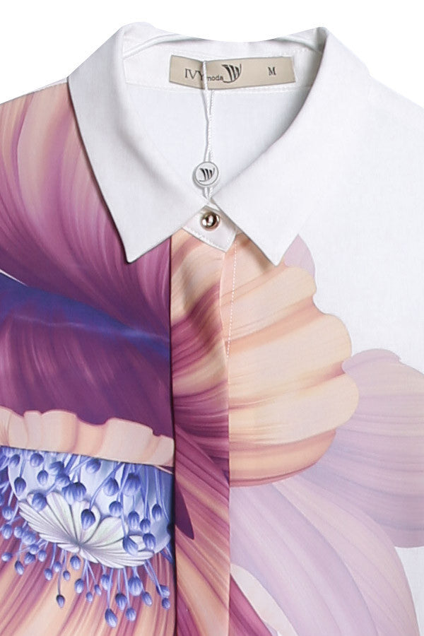 Họa tiết hoa poppy đã ghi dấu ấn mạnh mẽ cho sự sáng tạo của IVY moda trong năm 2015. Với công nghệ in Kornit chất lượng cao, đóa hoa poppy bản lớn hiện lên có chiều sâu và sắc nét hơn trong thiết kế sơ mi dài tay này. Chiếc áo có thể kết hợp hoàn hảo với chân zuýp bút chì cho vẻ đẹp thanh lịch, sành điệu.