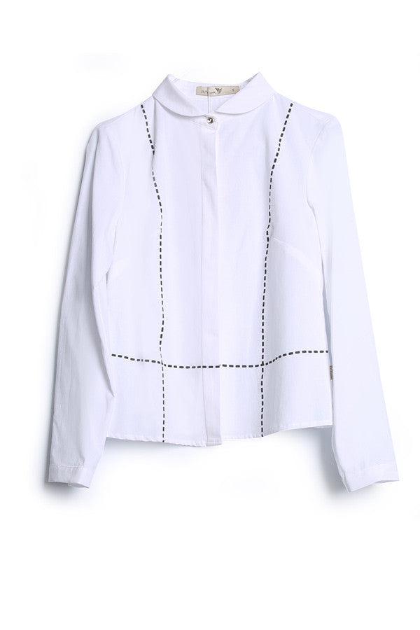 Kiểu dáng sơ mi basic cổ điển được cải biến về họa tiết gạch kẻ chạy dọc phần thân và eo mang lại vẻ hiện đại, mới mẻ cho người dùng. Với chất liệu 100% cotton sẽ đem lại cho bạn cảm giác thoải mái, dễ chịu khi vận động một thời gian dài. Áo có thể mặc với chân zuýp chữ A, zuýp mini hoặc quần âu công sở đều thích hợp.