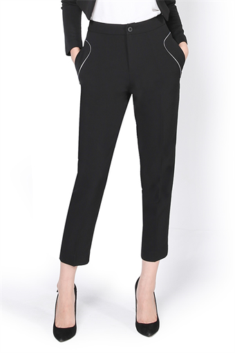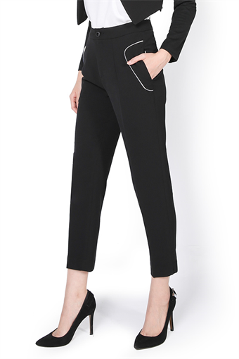 Quần có dáng ống đứng, hơi ôm với phần túi có viền làm điểm nhấn. Mẫu thiết kế có đường may tinh tế phù hợp với những cô nàng văn phòng.