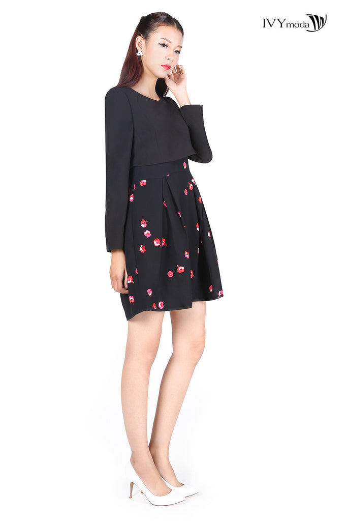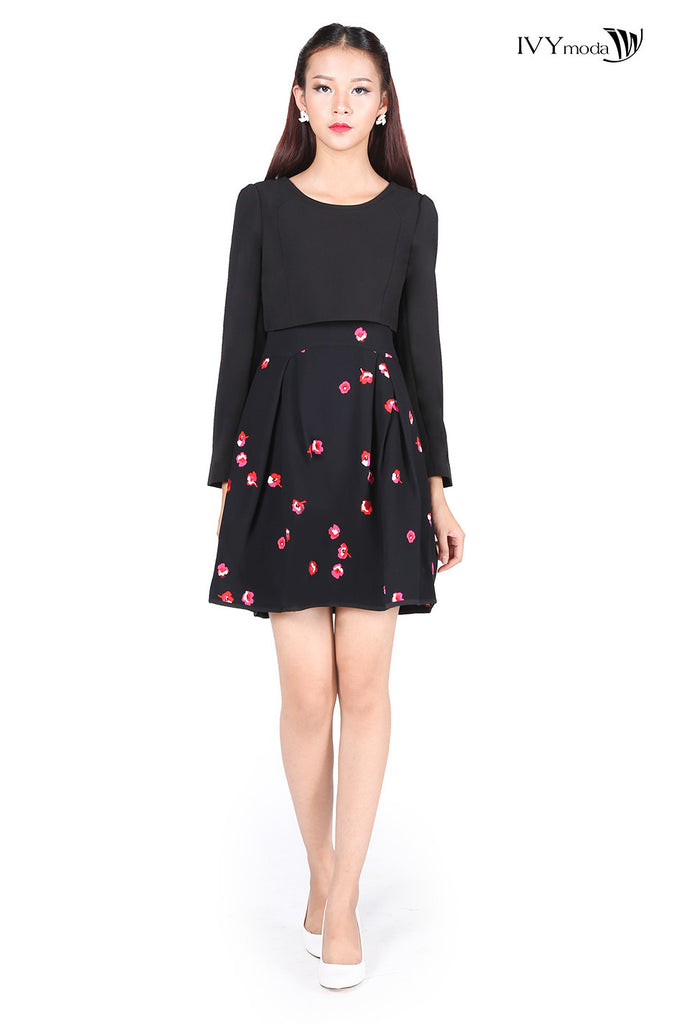 Đầm vest 2 lớp từ IVY moda với kiểu dáng layer trẻ trung cùng họa tiết hoa nhỏ được phối tinh tế đã xóa bỏ sự đơn điệu, buồn tẻ của mẫu đầm công sở cổ điển.